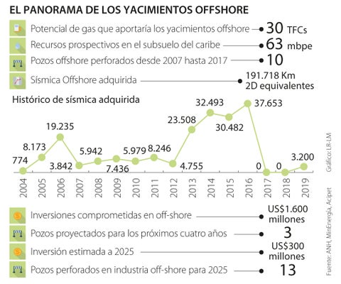 Frente a las labores de exploración, “hay inversiones en actividad exploratorio offshore entre 2007 y 2018 de US$1.101 millones y un potencial de reservas estimadas en las cuencas de Colombia, Guajira Offshore y Sinú Offshore de alrededor de cuatro teras”, afirmó Acosta.