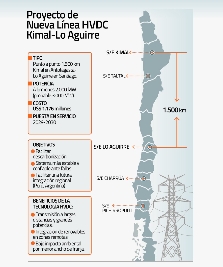Esto sucede una semana después de que se realizara la apertura de las ofertas económicas para la megalínea de transmisión Kimal-Lo Aguirre, obra de transmisión en corriente continua (HVDC) de 1.500 kilómetros que unirá Antofagasta y Santiago.
