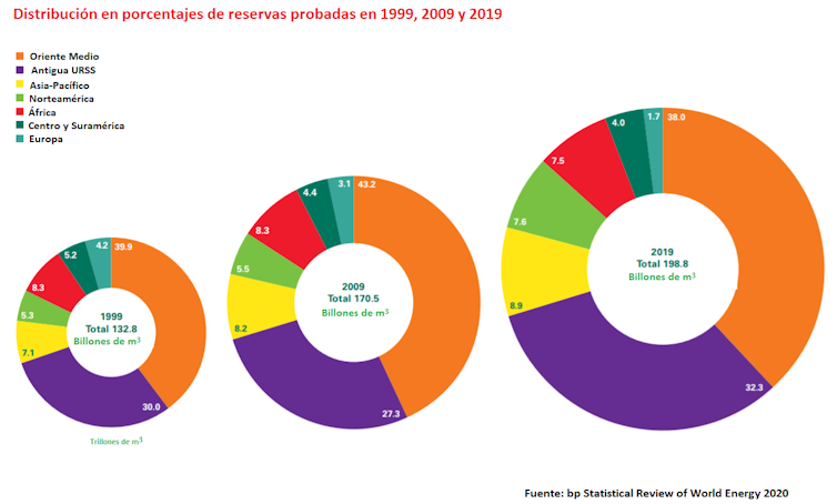 Las cifras del gas natural (GN) aturden por su magnitud. El promedio de reservas comprobadas del mundo se estima en 198,8 billones de m³. Traducidas a reservas potenciales, se aproximan a 400 trillones de m³ (figura 1).