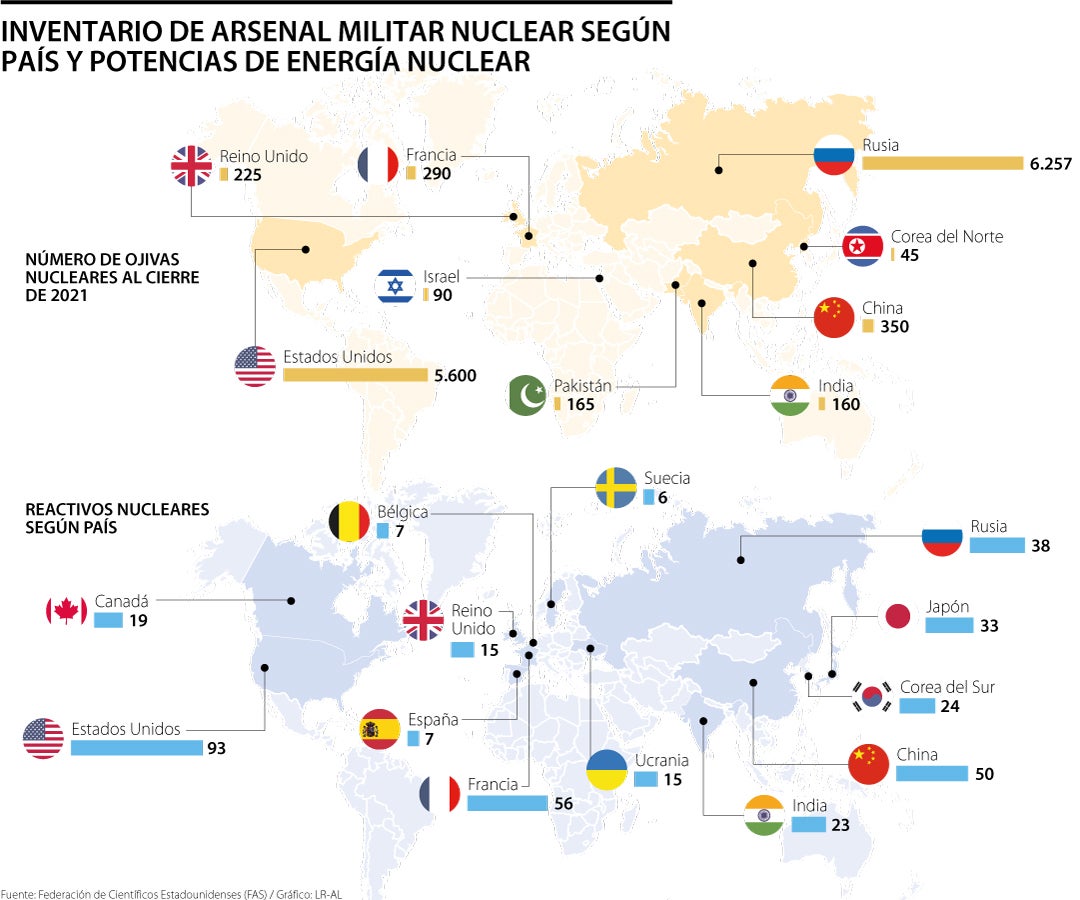 Según el informe, China, India, Corea del Norte y Pakistán aumentaron sus arsenales el año pasado, mientras que el Reino Unido anunció un incremento potencial importante. En el caso de Rusia hubo un incremento de las reservas útiles en los últimos años, mientras que en el de Estados Unidos aumentaron en 2019 para volver a reducirse en 2020 y 2021.