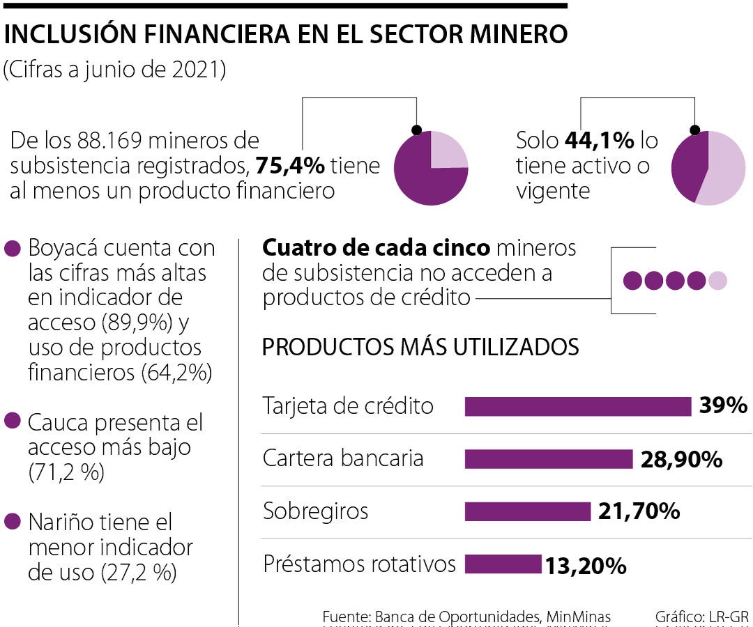 Respecto a los productos de crédito, cuatro de cada cinco mineros de subsistencia no acceden a estos, es decir, 20,6 % de estos trabajadores tiene al menos uno y el microcrédito es el más utilizado (12,7%).