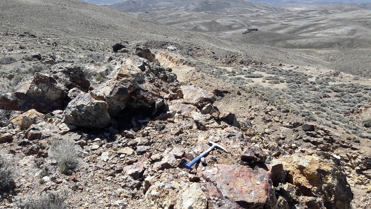 Las vetas epitermales expuestas en la superficie y en las trincheras están alojadas en rocas volcánicas de la Formación Chon Aike (edad Jurásica): similar a la mineralización en la propiedad Martha de la minera. Más de 240 metros continuos, muestras de canal recolectadas, de 12 tramos nuevos, con una sierra de diamante portátil.