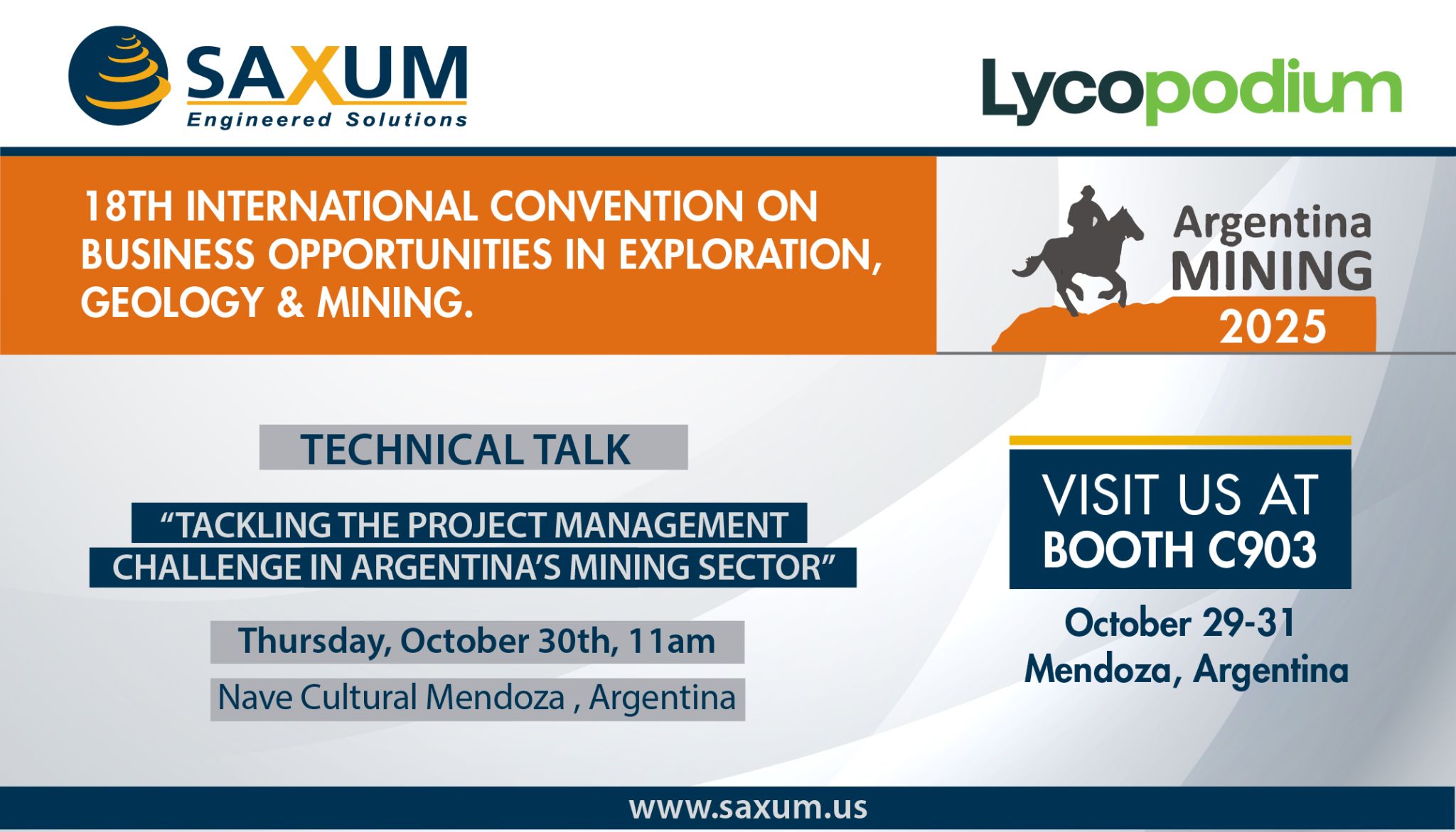 El equipo de SAXUM–Lycopodium estará ubicado en el Stand C903, donde presentará sus más recientes capacidades, casos de éxito y experiencia en proyectos dentro del sector minero de América Latina.