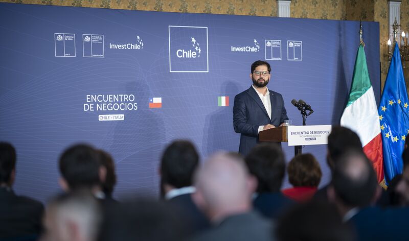 En el marco de su visita de trabajo a Europa, el Presidente de la República, Gabriel Boric Font, encabezó en Roma el Encuentro de Negocios Chile – Italia, una instancia organizada por InvestChile con el objetivo de profundizar los lazos comerciales y atraer capitales. El evento congregó a más de 150 inversionistas italianos y contó con la participación de altos funcionarios de gobierno y congresistas chilenos.